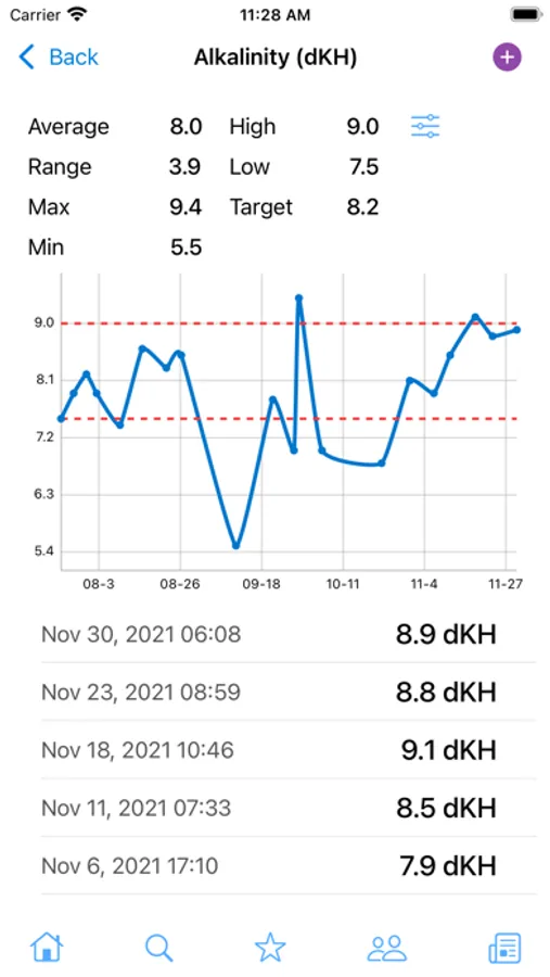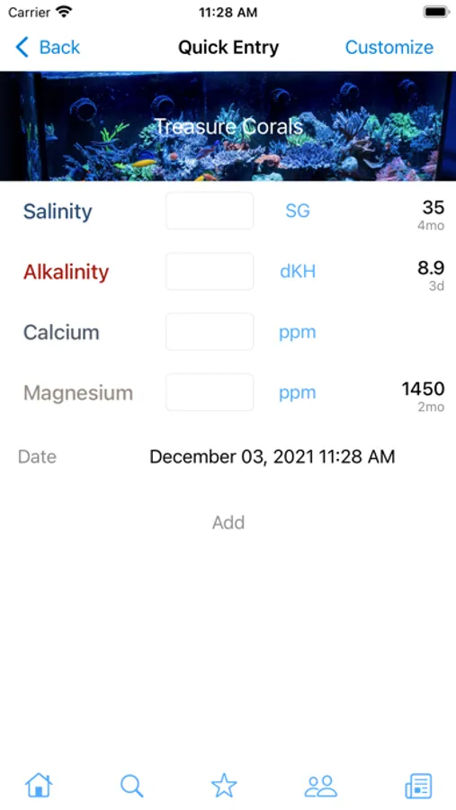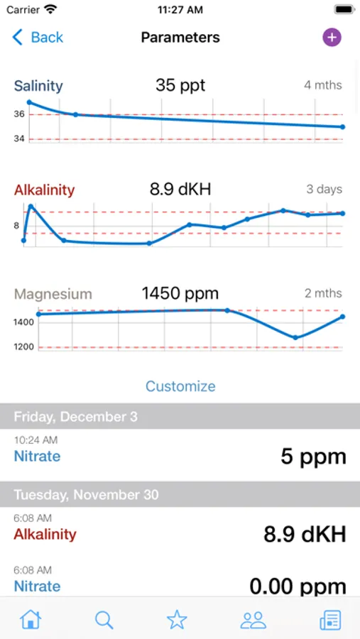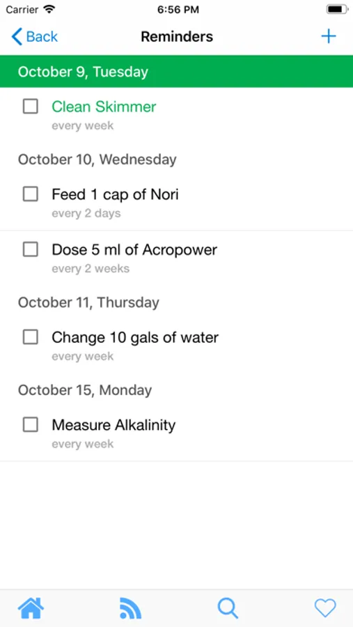 - Manage reminders for maintenance, water changes, feeding, dosing and measurements