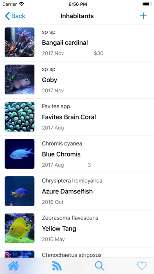 - Keep track of aquarium inhabitants