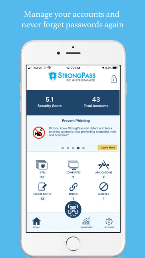 StrongPass is a personal online password management system by Authomate INC and built by a team with decades of security, infrastructure, defense and intelligence experience who have collaborated to create this patented authentication technology. The app has been redesigned for iOS12 and will let you to manage unlimited logins/passwords. With StrongPass, you can login to your favorite sites with just a wave of your smartphone. Existing password management solutions keep a copy of your password database on each machine you use and synchronize them, thereby making your credentials more vulnerable to hacking and identity theft. Some keep your credentials in the cloud. StrongPass on the other hand keeps your passwords very safe. Your credentials are not stored in the cloud or on Authomate servers. They are stored on your smart phone under multiple layers of strong encryption. No one else can access your data, even if you lose your phone. Although Authomate Authentication server takes part in the authentication process, your credentials are never visible to anyone else including Authomate. Authomate StrongPass uses bank level security to ensure your credentials are safe from prying eyes of hackers and not prone to theft. You can rest assured that your credentials are safe and secure. Your online safety is at the heart of what we do. Download StrongPass for iPhone NOW and never worry about passwords again.
