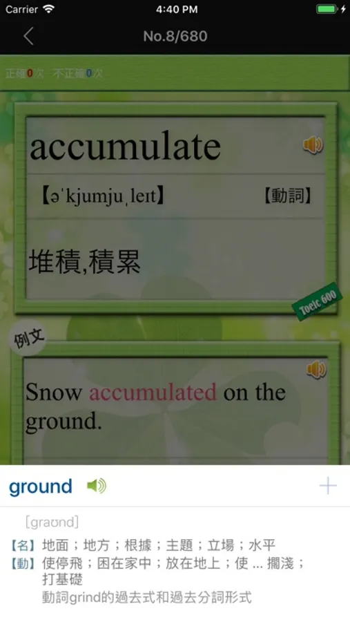 回答錯誤的問題,重複再挑戰,在不知不覺中,您就記住了新單詞的意思! !