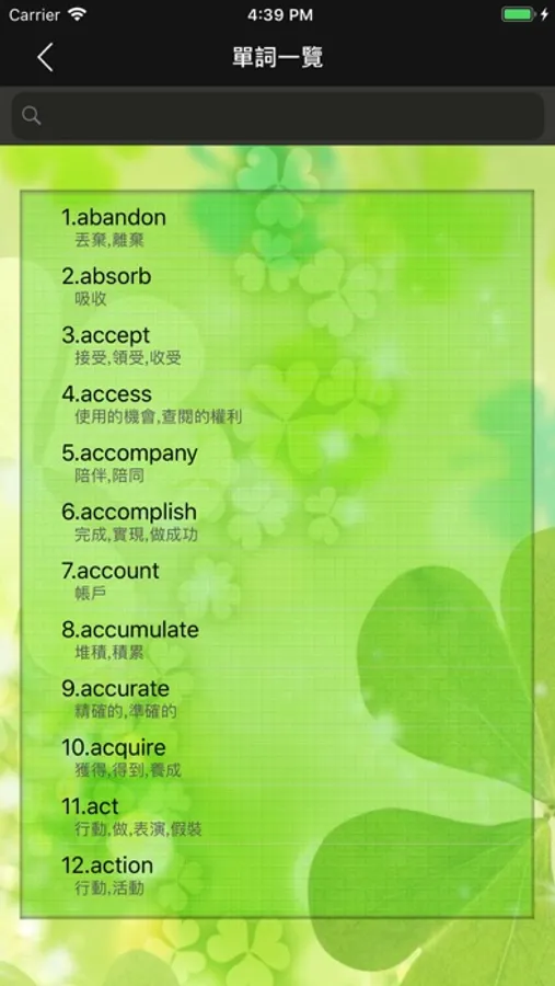 ・此功能主要包含了所有單詞的中英文一覽表,並同時支援中文和英文單詞的檢索;