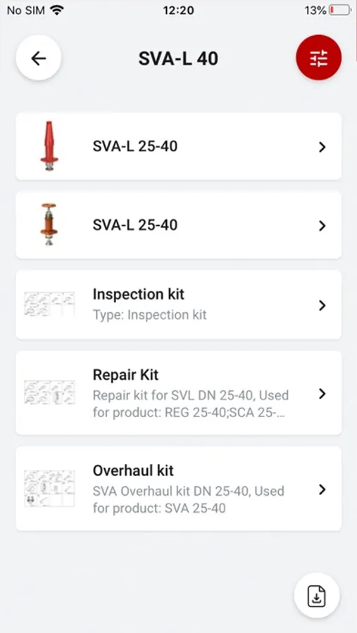 A streamlined interface help you navigate different product categories and types to find the part you need. Once there, you can view images, illustrations, data sheets, and documentation to see which parts are included and their specifications and code number.