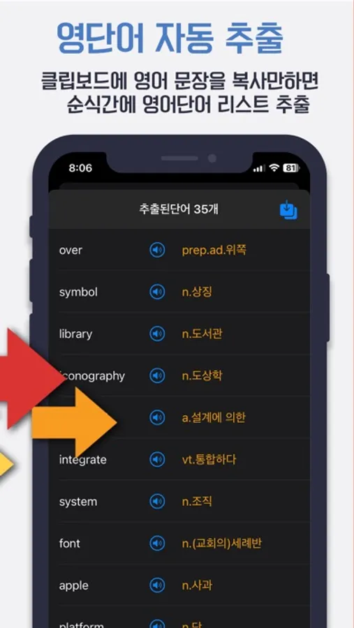 읽고 싶은 책이나 뉴스기사 또 메일등에서 영어문장을 복사하거나 촬영하여 영단어 추출기를 실행시켜주세요