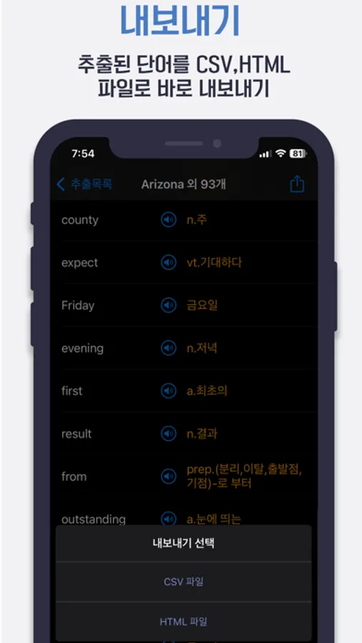 *단어리스트를 CSV, HTML파일로 내보낼수 있습니다.