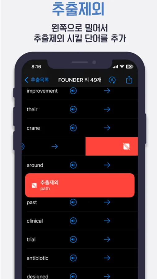 *추출단어 리스트에서 쉽고 빠르게 추출제외 리스트에 추가.