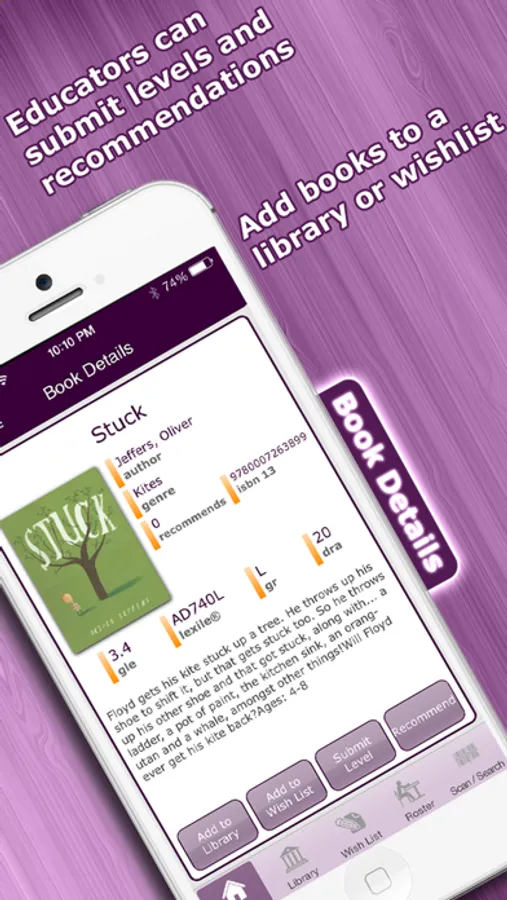 ‣ Scan or manually search by ISBN, book title or author to lookup level information where available.