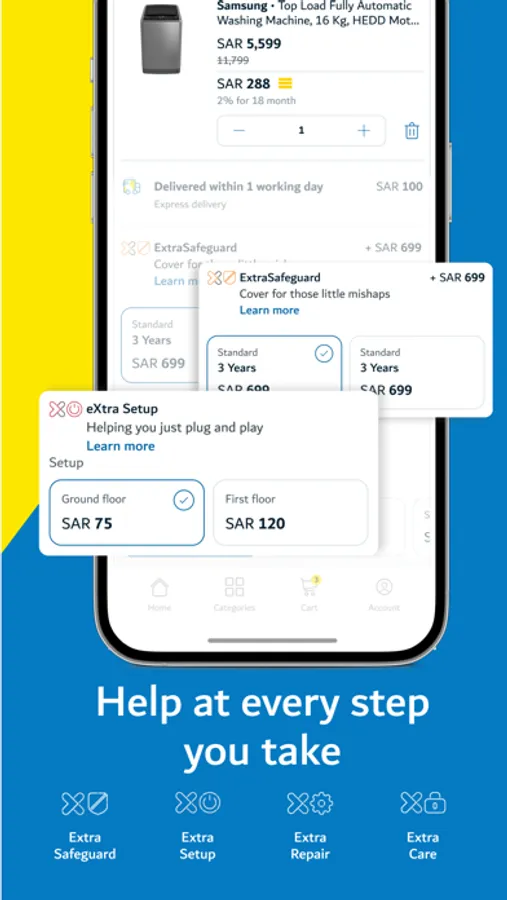 The eXtra app is your best companion for shopping electronics in Saudi Arabia, Bahrain, and Oman. Discover, buy, and protect your new tech. We’re with you at every step of your shopping journey, with extensive product details, extended protective warranties, order tracking, free delivery, and appliance installation.