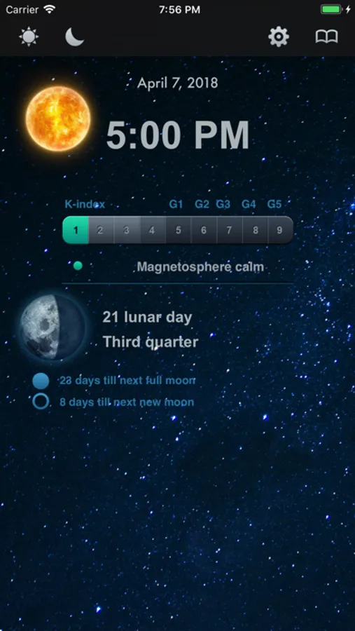 Using this application, you can see actual value of current magnetosphere (in scale, from 1 to 10), also you will have access to 3-day history.