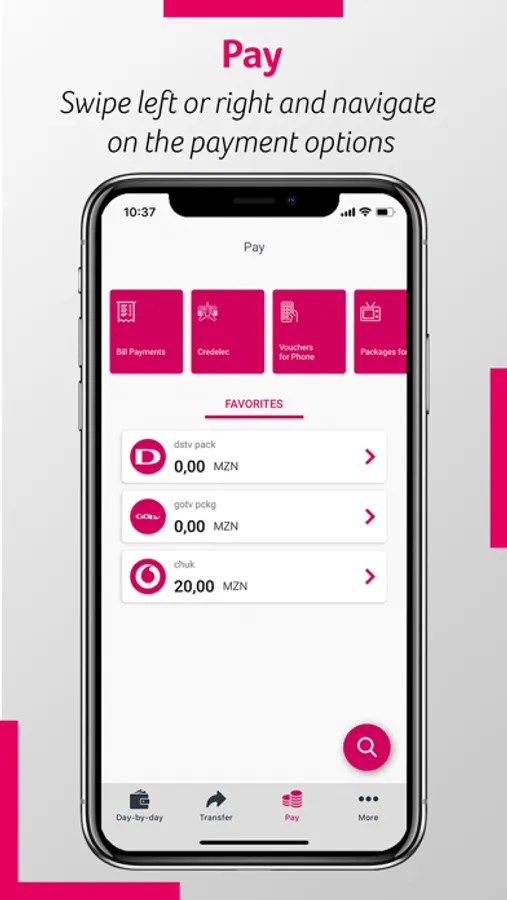 Whenever you want to pay for a service, just click on “Pay” on the navigation bar. Here you can make the following payments: