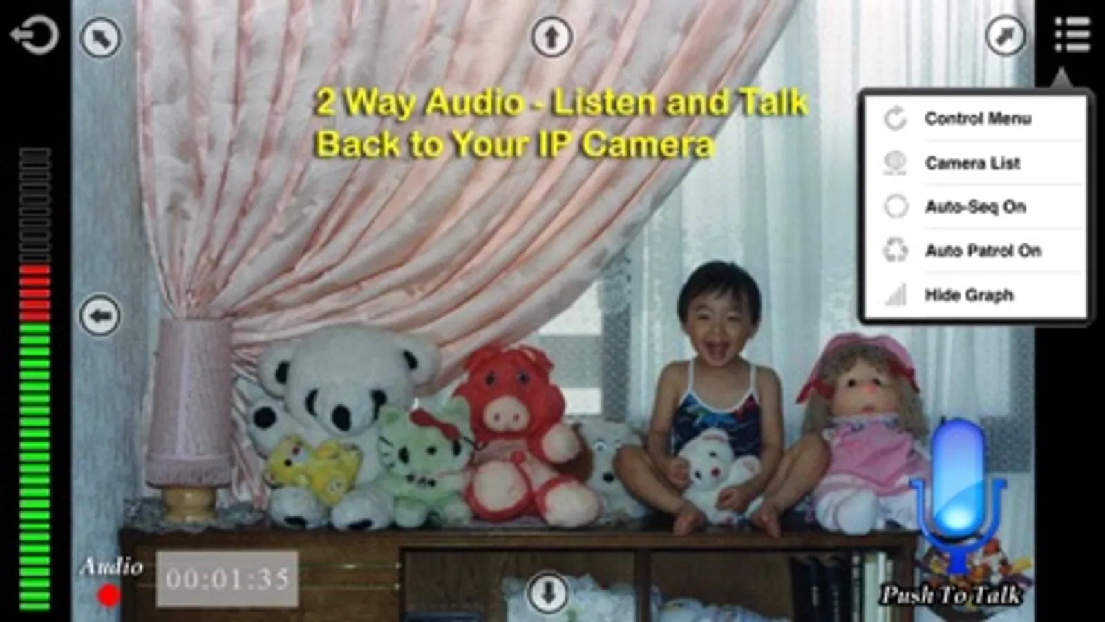 ▶ 2 Way audio with Push To Talk (Apexis, Axis, Foscam)