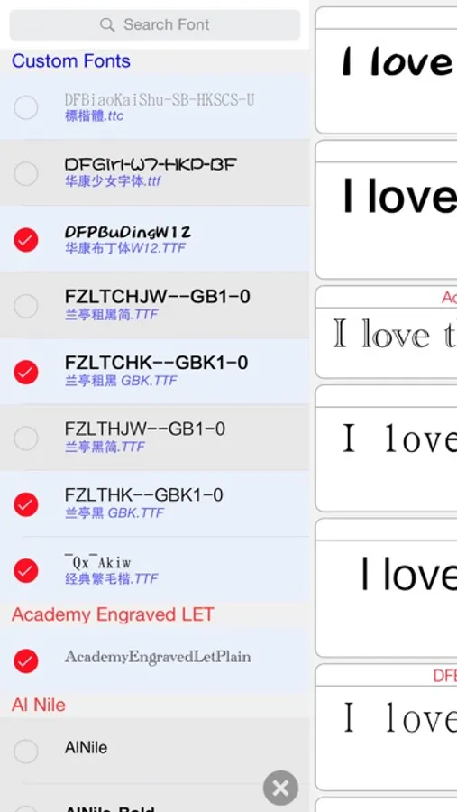 With 'Font Preview', you can preview all the iOS embed system fonts and any custom fonts on your iPad.