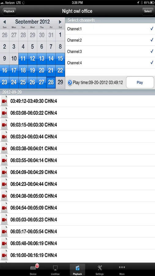 • Video playback of ANY recorded video stored on your DVR