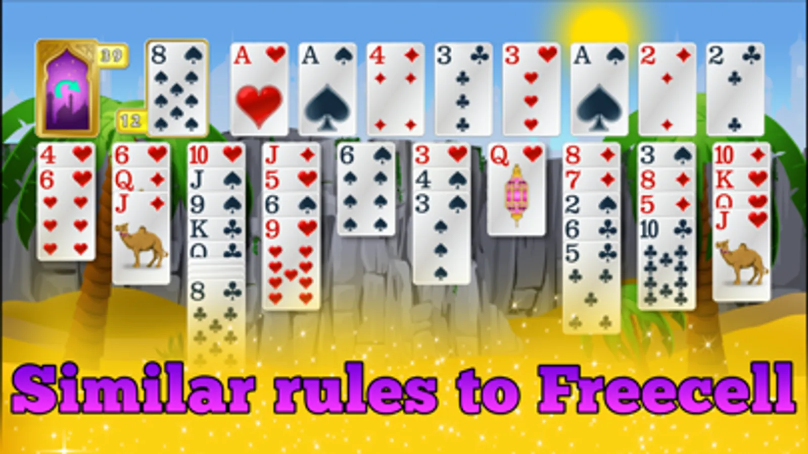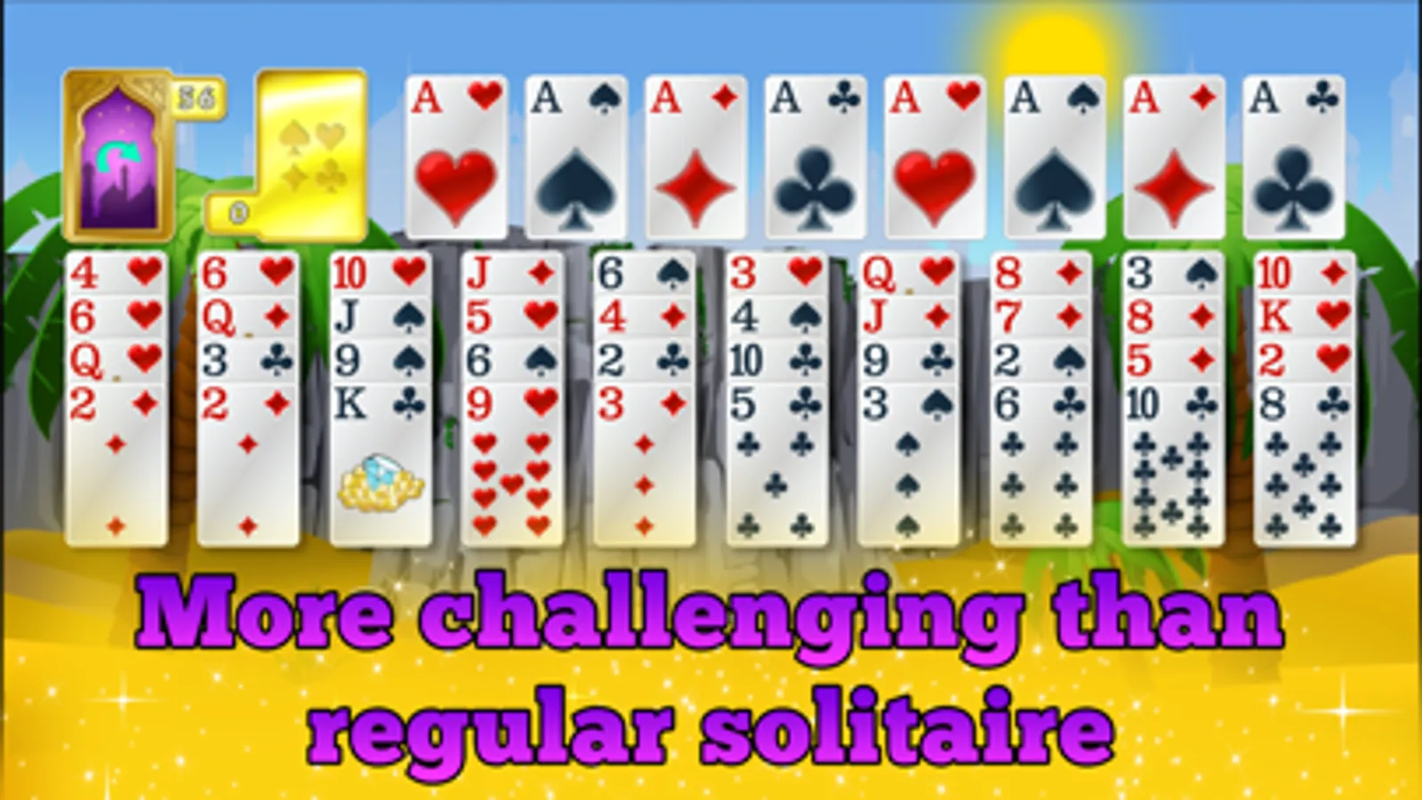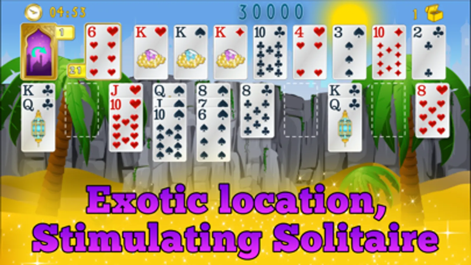 Play Forty Thieves Solitaire Gold for a real solitaire challenge! If you’re bored of easy solitaire games, take on this hard card game, test your skills and triumph in a themed world based on the Arabian Nights!