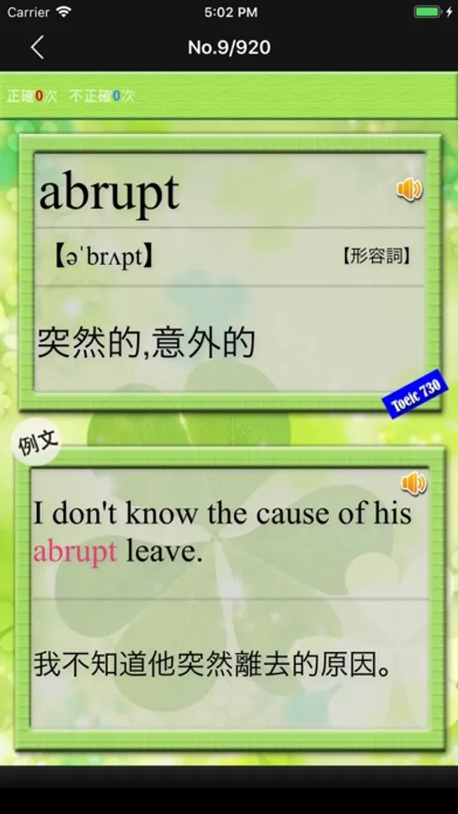 收錄了Toeic730分的重要英文單詞,軟體本身操作簡便,靈活,易用性好,且遊戲感十足,讓您在娛樂的同時學習單詞,一舉兩得。
