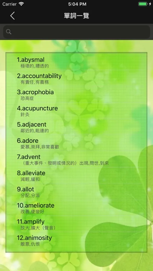 ・此功能主要包含了所有單詞的中英文一覽表,並同時支援中文和英文單詞的檢索;
