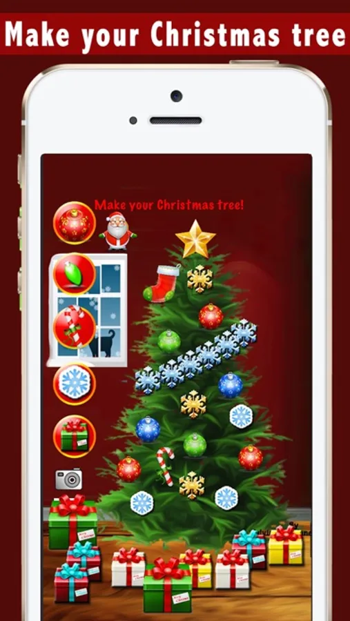 Save your tree as image and choose the decorations and the presents and then decorate your mobile Christmas tree.