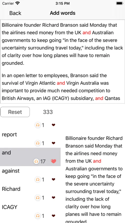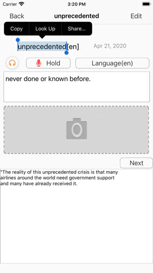 Support for generating word lists based on the articles you enter, from which you can select unfamiliar words.