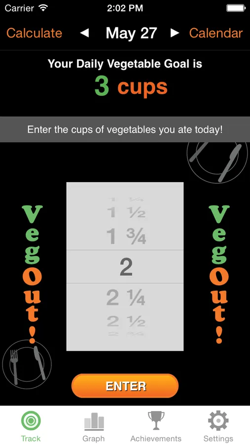 • Track the veggies you eat and view your goal progress