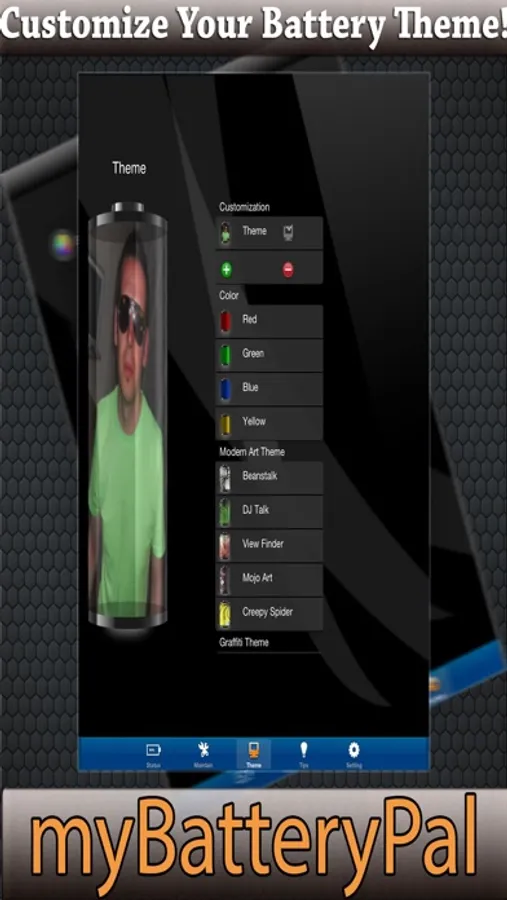 29 Different battery themes! Including customisable themes! Want to use your own photo as a battery theme? No problem!