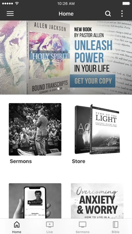 • Watch live worship services or consume the television and radio broadcasts on demand