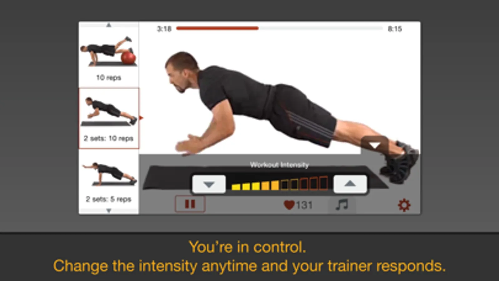 • Completely interactive. Swap out exercises to personalize your workouts. Increase or decrease the intensity at anytime and your trainer — and your music — will respond!