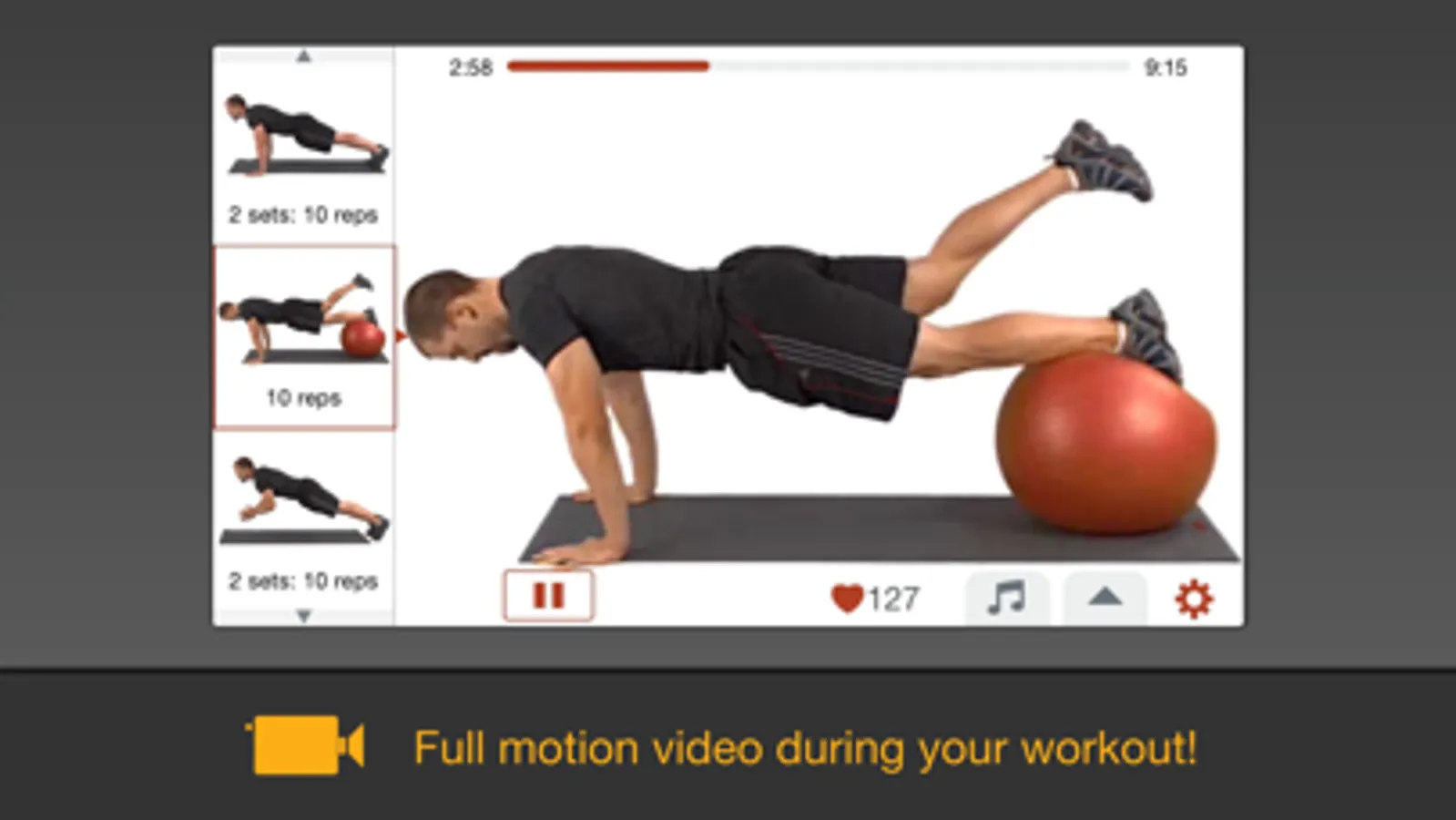 • 49 unique exercises. Each one includes a video and audio description to help you perfect your form.