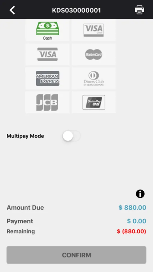 • Simple payment with split bill/merge bill feature and multiple payment methods