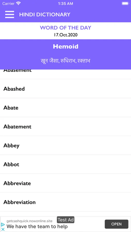 Hindi dictionary app is a helpful Hindi dictionary that contains English words with corresponding Hindi explanations.