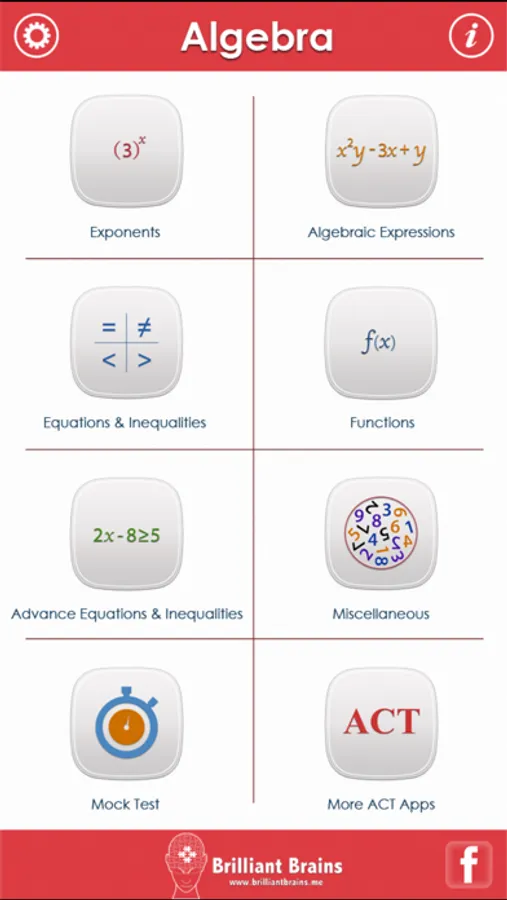 490 questions and 49 revision notes covering all ACT Algebra syllabus. This is a high quality content written by an experienced Mathematician.