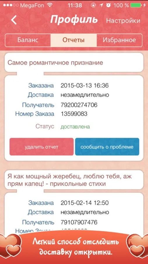 Ты будешь точно знать, что адресат получил и прослушал твою открытку благодаря функции отчет о доставке!