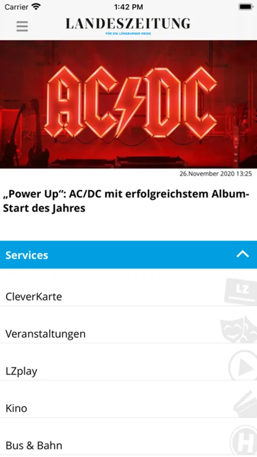 LZclever ist die Service-App der Medienhaus Lüneburg GmbH. Insbesondere entwickelt für Abonnenten der Landeszeitung für die Lüneburger Heide, gibt es aber auch für alle anderen Lüneburger und Lüneburg-Besucher nützliche Funktionen wie den Newsticker, dem LZ-Videoportal „LZplay“, dem Kinoprogramm in Lüneburg und zu Services von Bus & Bahn. Unter "Lüneburg erleben" finden Sie ausgewählte 360°-Bilder aus unserer schönen Stadt.