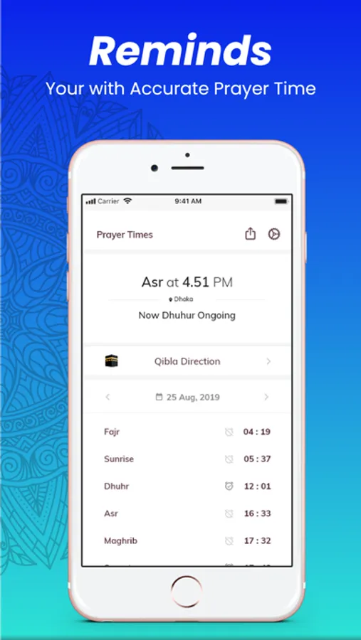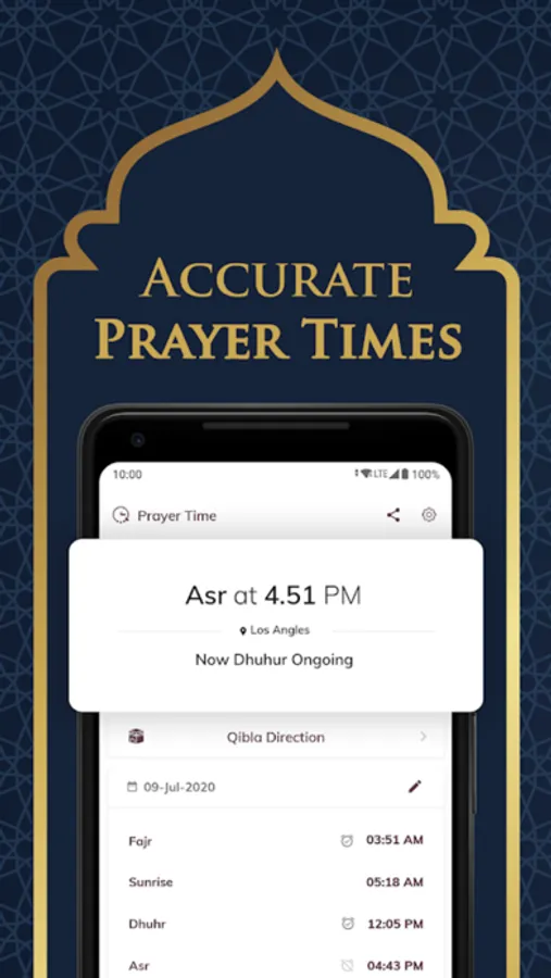 The athan function gives accurate prayer times for over 200 cities all over the world. There are over 10 free athan voices and audio.