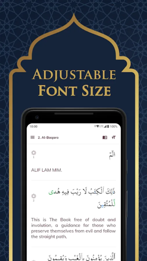 #5 Adjustable Font Size, Read Quran In Your Preferred Size.