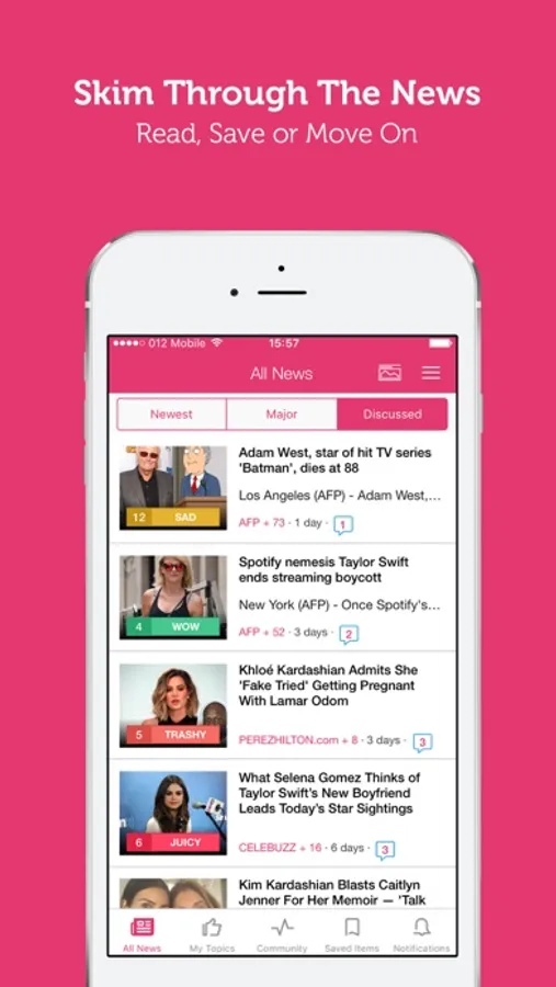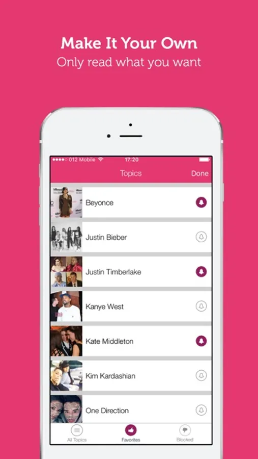 - Your very own news feed - choose the celebrities and topics you want to follow, block or get notifications about