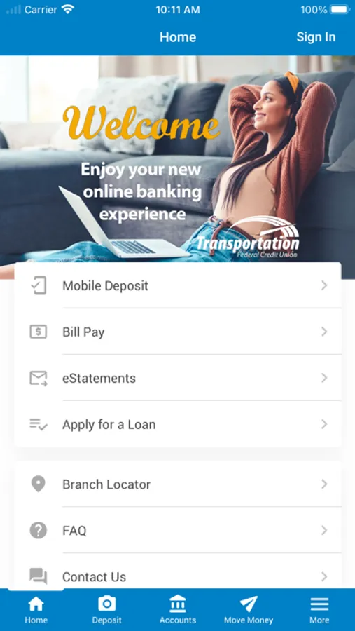 Transportation Federal Credit Union Mobile provides members convenient access to our website, mobile check deposit, mobile banking, branch and contact information.