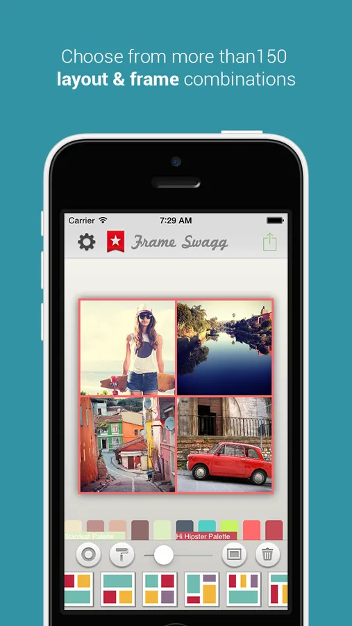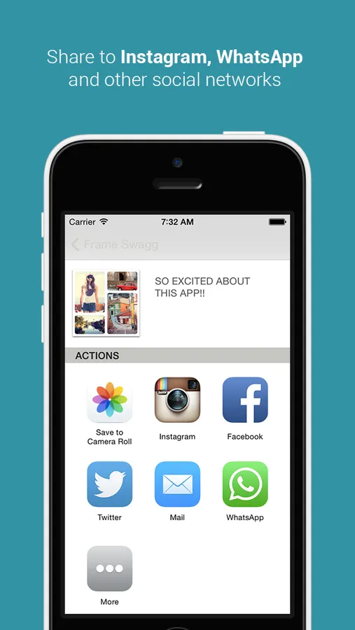 Quickly combine your photos into your choice of frame layouts and send to Instagram, Facebook, Twitter and more, right from your iPhone.