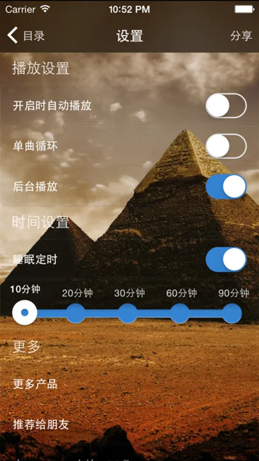 5.睡眠定时:设定自动关闭播放时间,时长从5分钟到3小时,到时自动关闭