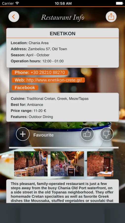 - Find restaurants using advanced search criteria (region of Crete, price, cuisine type and other parameters).