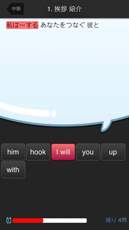【3】和文を見ながら表示された英語を瞬時に並びかえる。