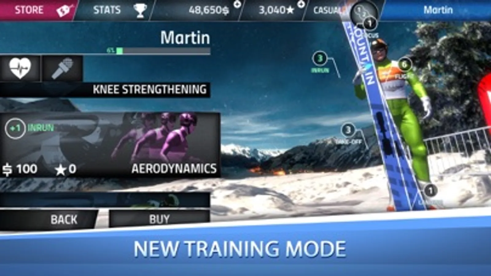 Improve the skills of your jumper through training and choose from over 50 clothing and board accessories including gloves, skis, helmets, boots and suit items.