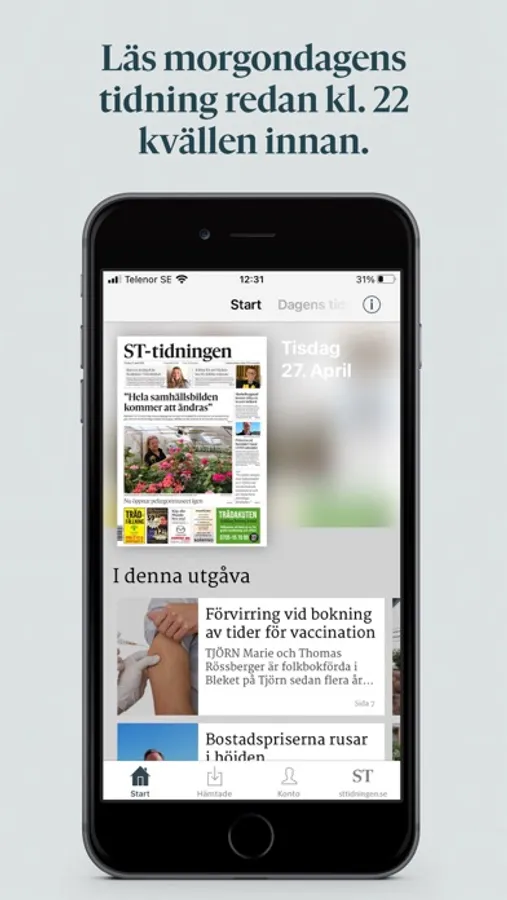 E-tidningen är den digitala versionen av ST-tidningens papperstidning. Var du än befinner dig så kan du ladda hem tidningen och läsa den offline. Appen är gratis att ladda ner men du behöver ha/teckna en prenumeration för att kunna läsa den.