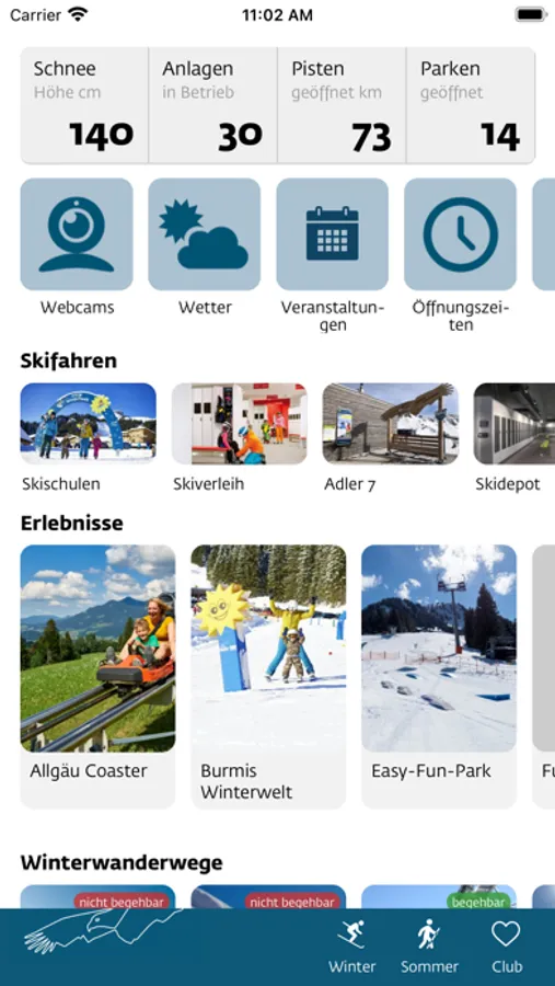 Aktuelle Informationen, Webcams, Wetter, Anreise, interaktiver Pistenplan oder Wanderpanorama, Status Bergbahnen oder Schneebericht, Gastronomie, Skischulen, Skiverleih, Preiskalkulator und mehr.