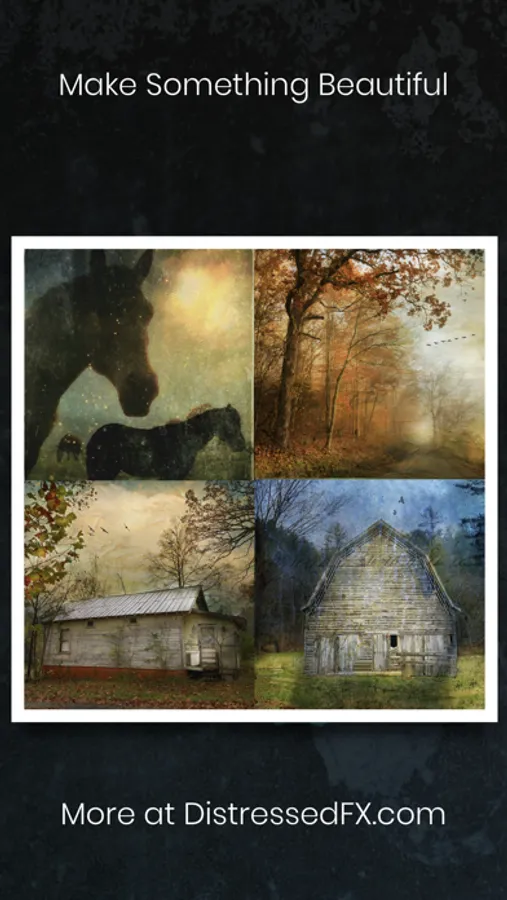 Distressed FX is powered by the textures of Cheryl Tarrant, a texture artist from Tennessee. Her popular and unique style is now available in your pocket, wherever you go.