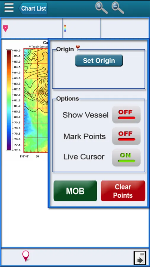 Note: The Terrafin Mobile app installs with an assortment of sample charts, that you can use to try the various features. Access to current data requires an active subscription to the Terrafin website, available @ $109.99/year.