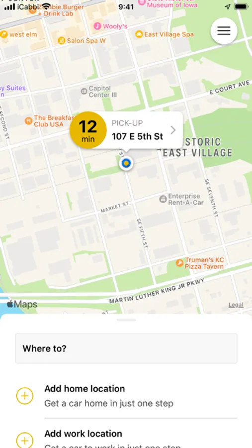 • Enter your destination address (this allows us to provide an estimated fare amount)