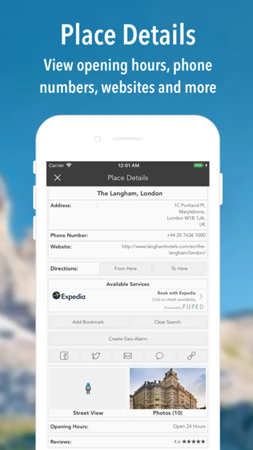 - Just tap on any of the places of interest on the map for more details, or to access street view.