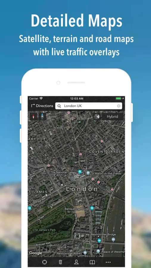 - Swipe up and down with two fingers to tilt the map and access 3D views in main cities around the world.