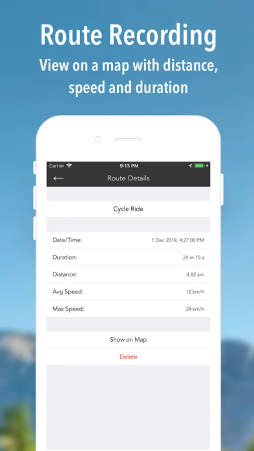 - Record journeys such as a hike, bike ride or road trip, even while the app is in the background. Recorded routes are saved and can be recalled at any time. (IAP)