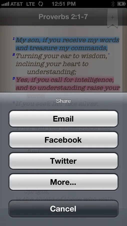 * Share scripture via social media (e.g. Facebook, Twitter, Email)