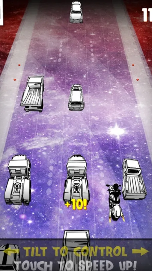 Put in your headphones and just kick back for some challenging street racing fun. Connect with your friends on Game Center for high scores - see how far you can get on these crazy highways in space.